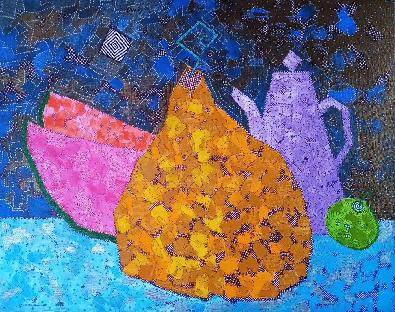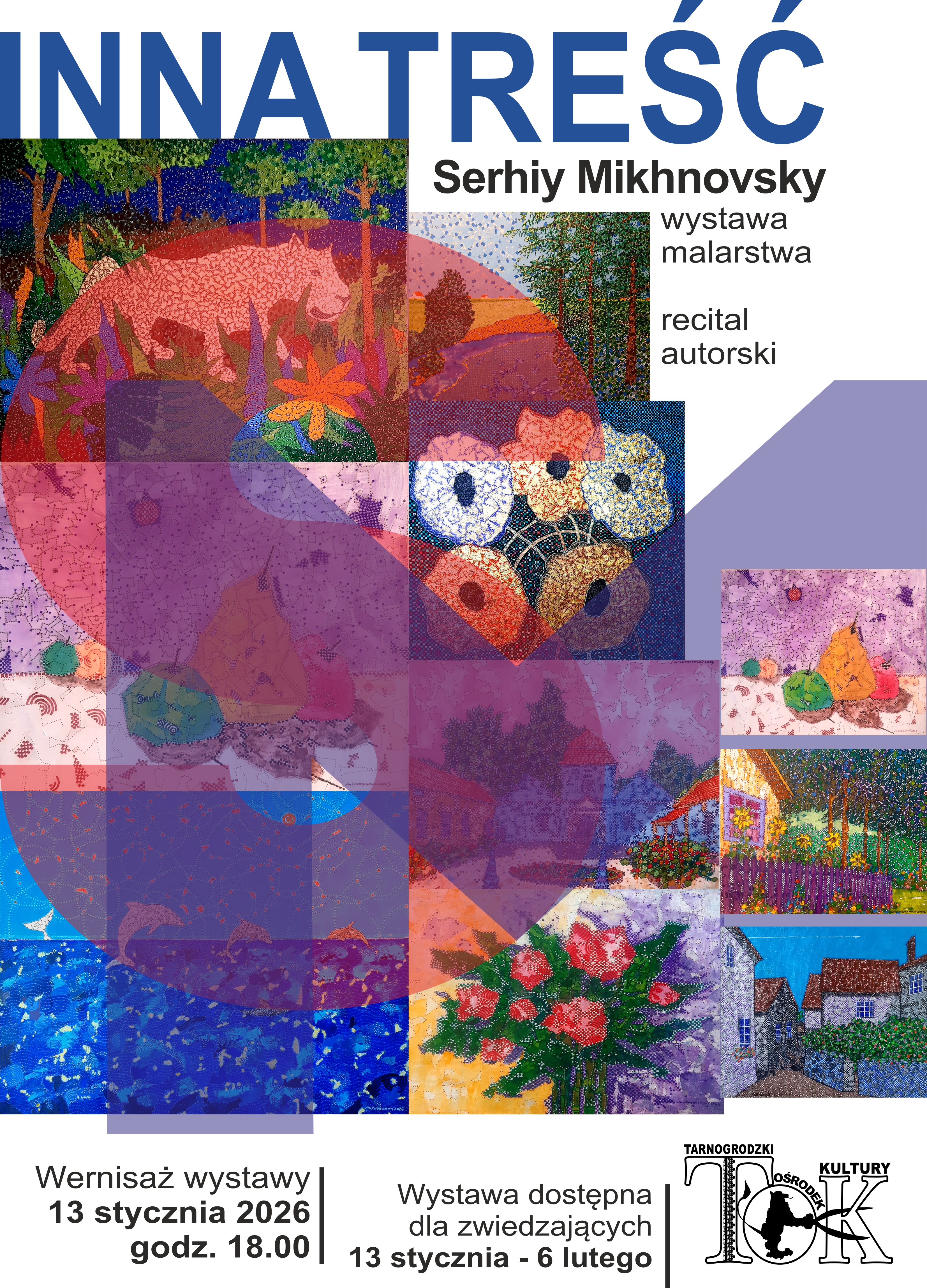 Moje obrazy do wystawy “Inna treść” powstały w czasie wojny rosji z Ukrainą. Emocje spowodowane straszną, niesprawiedliwą agresją na mój kraj w 2022 r. ograniczyły moją działalność artystyczną. Stres, alarmy, ataki rakietowe, dronowe, wybuchy, ruiny, uchodźcy…, ciągłe myśli o losach bliskich i znajomych... To wszystko zahamowalo na ponad rok moją artystyczną kreatywność. Po czasie pozbierałem się i wrócilem do malowania. Postanowiłem na złość wojnie tworzyć optymistycze, barwne obrazy napełnione humanizmem i myślami o pokoju. Pierwsza ich prezentacja odbyła się w Święto Niepodleglości Ukrainy we Lwowie w 2024 r.