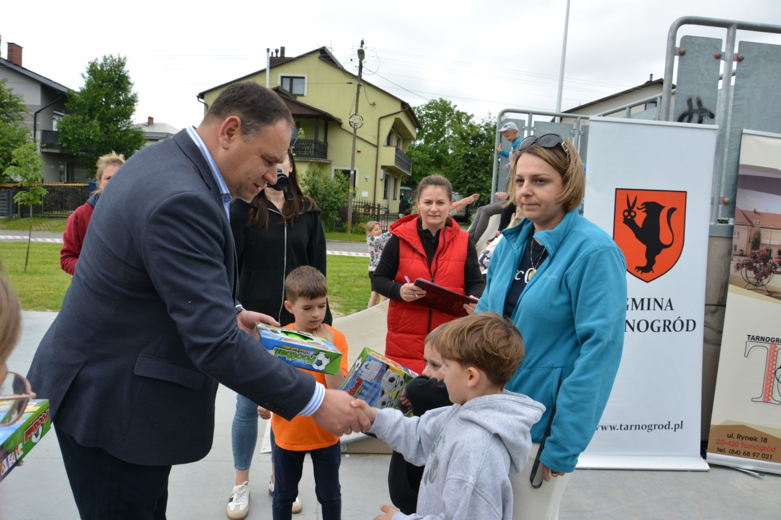Urząd Miejski w Tarnogrodzie, Tarnogrodzki Ośrodek Kultury, Szkoła Podstawowa im. Marii Curie-Skłodowskiej oraz Zarząd Dzielnicy Przedmieście Błonie.
