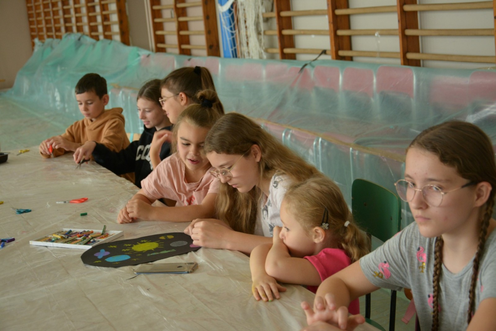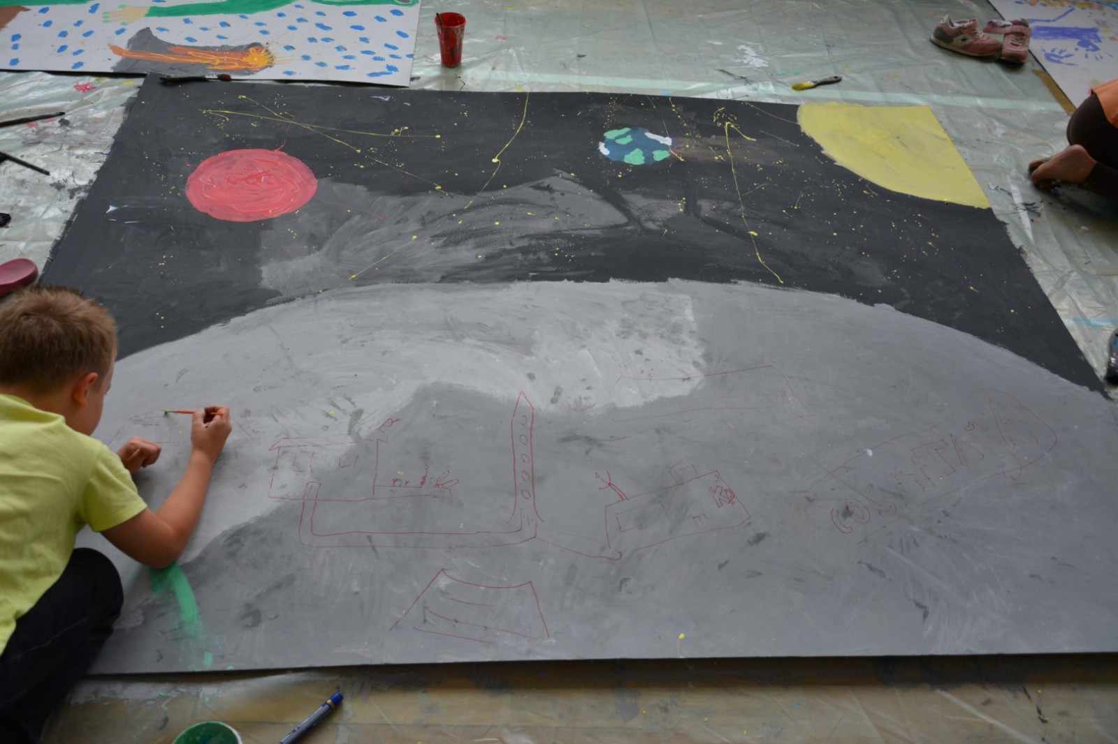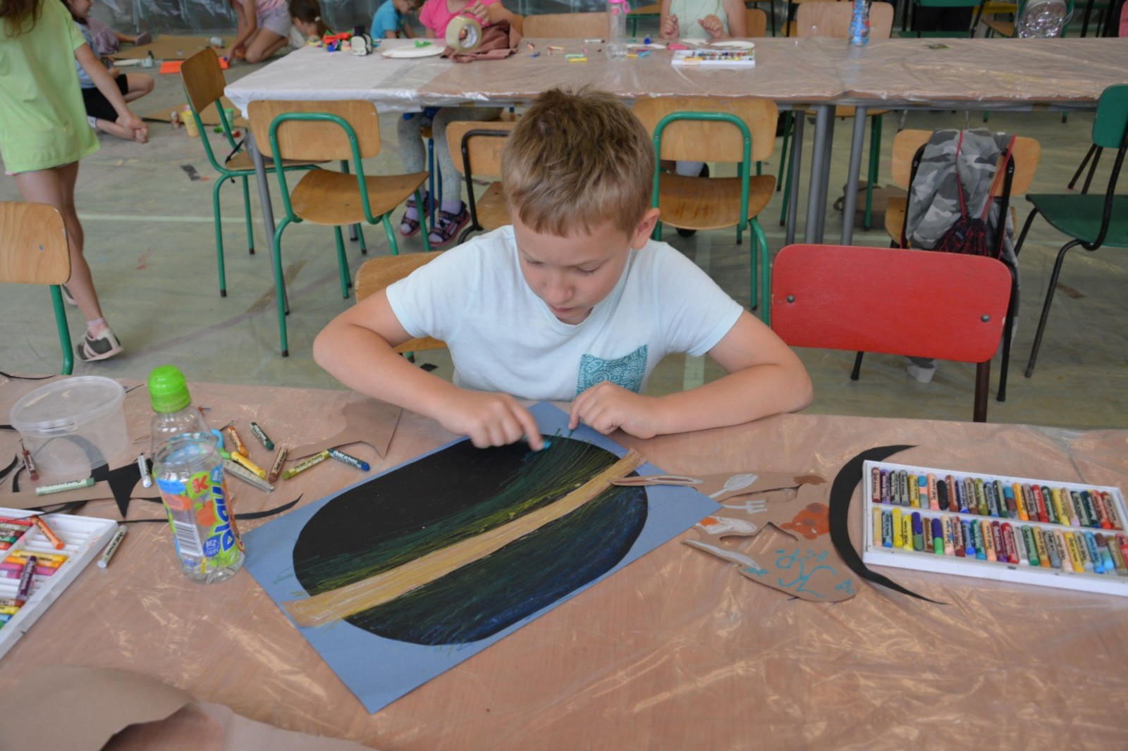 Tematem wiodącym tegorocznej edycji był KOSMOS i kosmiczne wyprawy – wymyślanie kosmicznych pojazdów, potraw, innych planet i istot ich zamieszkujących. Powstały imponujące prace wielkoformatowe! Młodzi artyści lepili z gliny wyjątkowe pamiątki z kosmosu, dając upust swojej wyobraźni i kreatywności. Z kolei z materiałów pochodzących z recyklingu dzieci tworzyły oryginalne prezenty dla kosmity – niepowtarzalne, pełne fantazji i humoru. Na zakończenie uczestnicy stworzyli wspólny, pożegnalny obraz – pełen kolorów, emocji i wspomnień z całego tygodnia. Zwieńczeniem warsztatów była również wystawa wszystkich powstałych prac, która pozwoliła zaprezentować twórczość uczestników w pełnej okazałości. Ostatniego dnia Wakacyjnej Szkółki Letniej uczestnicy otrzymali pamiątkowe dyplomy – jako wyraz uznania za zaangażowanie, twórczą pracę podczas zajęć. W zajęciach brało udział około 60 artystów-amatorów.