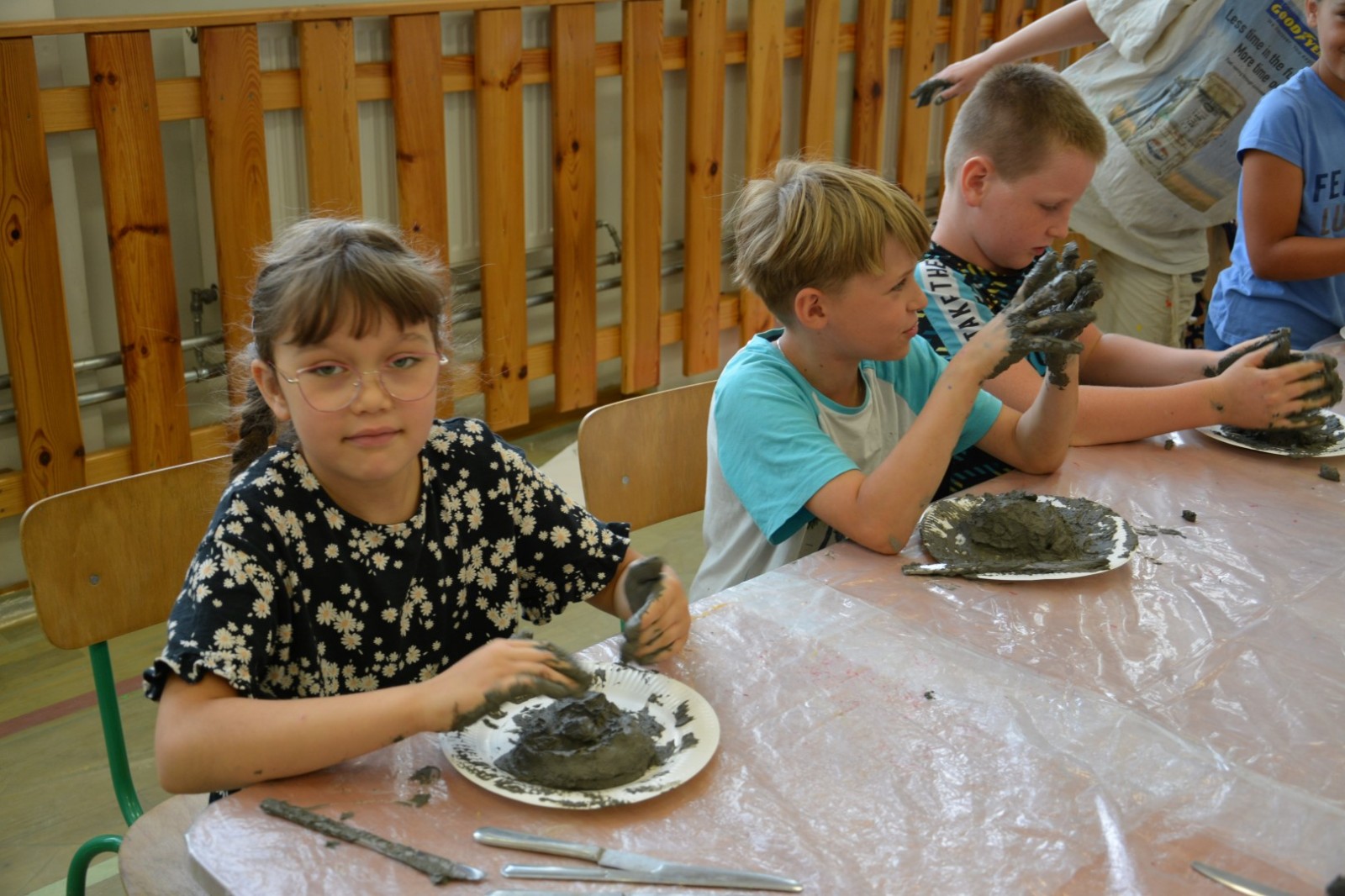 Pod ich czujnym, lecz nienarzucającym się okiem, uczestnicy mieli szansę próbować różnych technik i form - od rysunku, malowania, poprzez kolaż, do lepienia z gliny. Państwo Kołyszkowie, którzy od lat z powodzeniem prowadzą warsztaty w Tarnogrodzie, inspirują, podsuwają tematy, ale zawsze zostawiają artystom pełną swobodę twórczą.