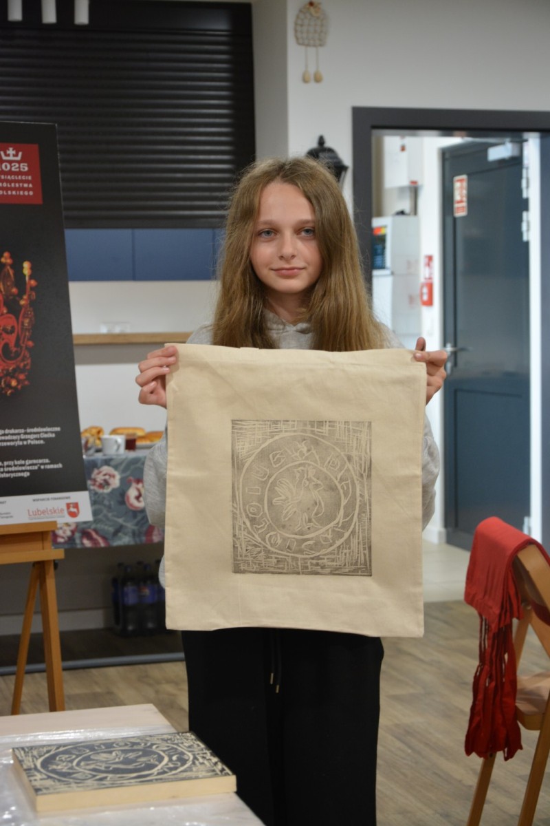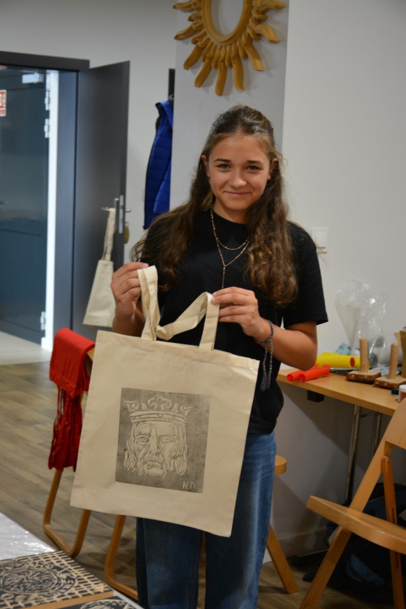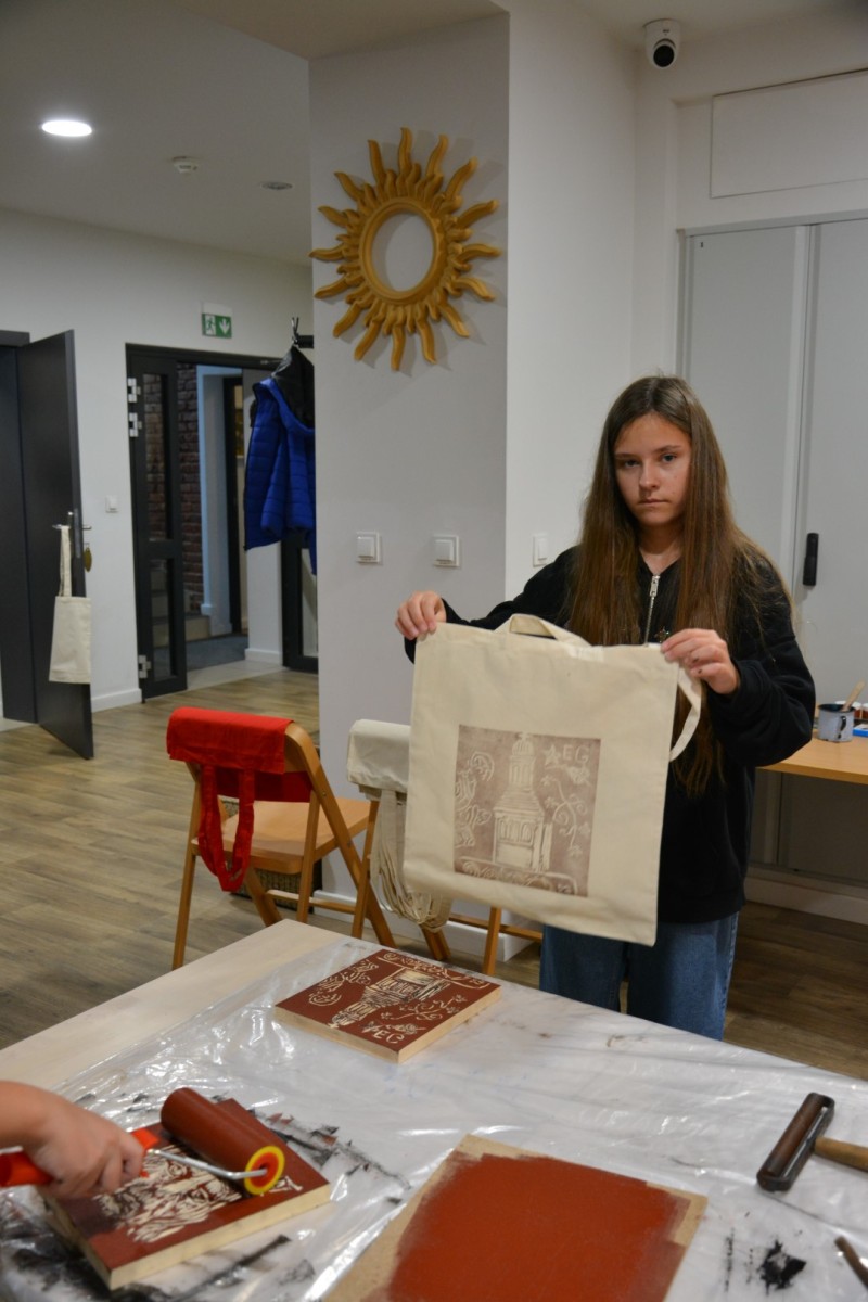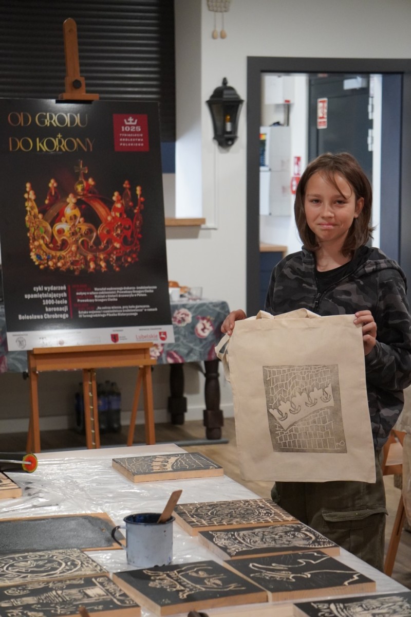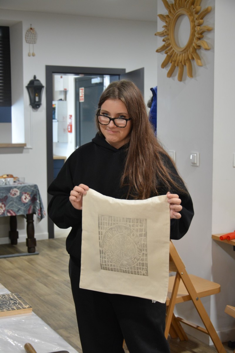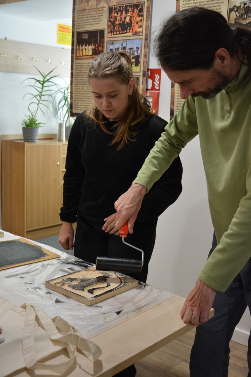 Najpierw podczas kilkugodzinnych warsztatów uczniowie ze SP w Tarnogrodzie samodzielnie wykonali drzeworyty inspirowane średniowiecznymi wzorami, które następnie posłużyły jako matryce do zadruku bawełnianych toreb. Tarnogrodzki Ośrodek Kultury na chwilę zamienił się w tradycyjny warsztat drukarski, a uczestnicy mogli przejść przez każdy etap procesu zadruku tkaniny.