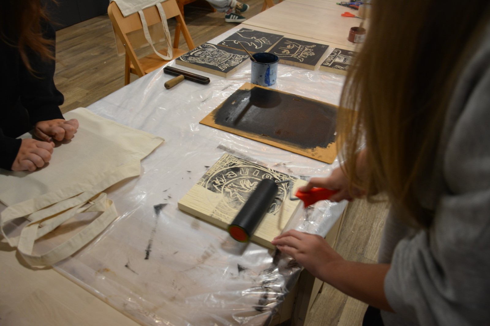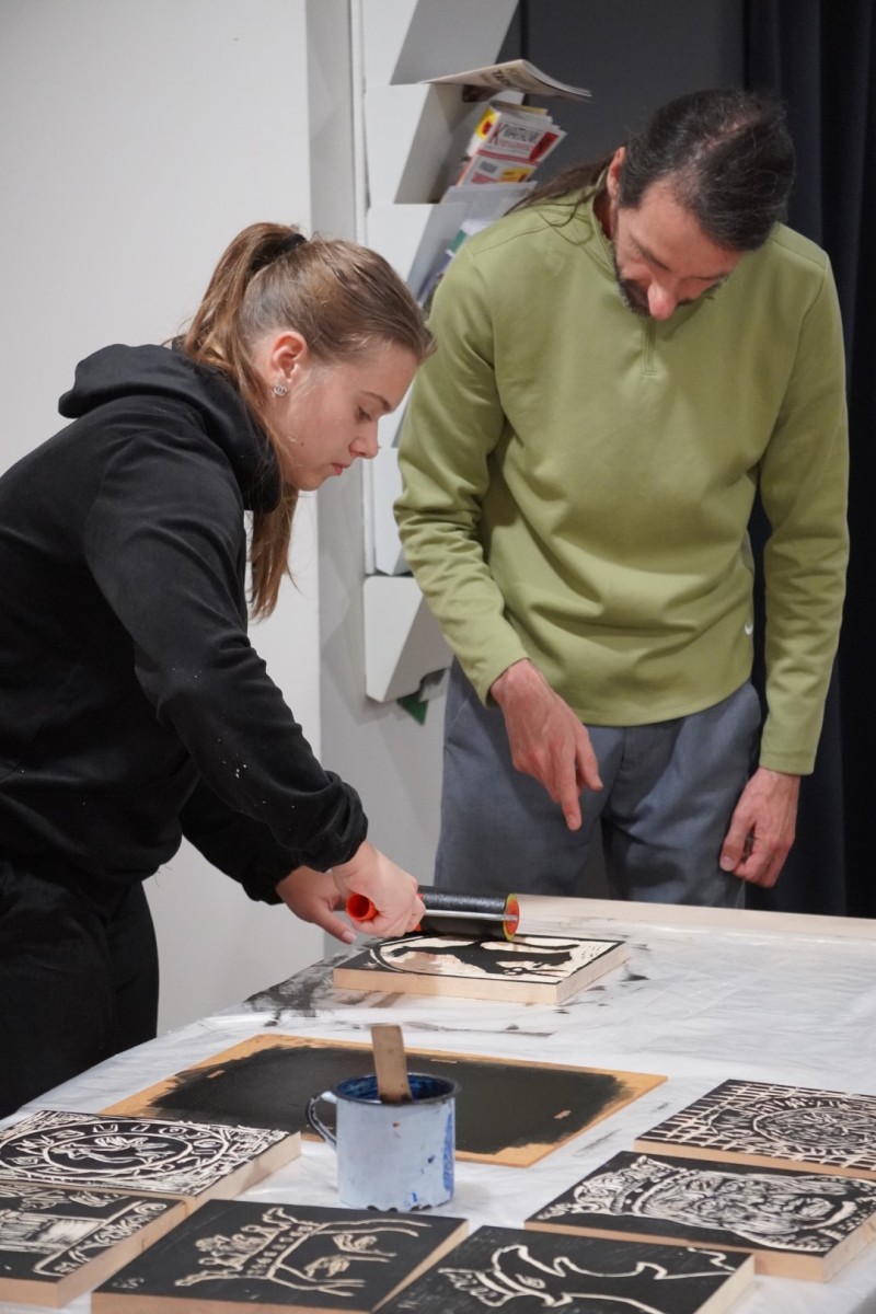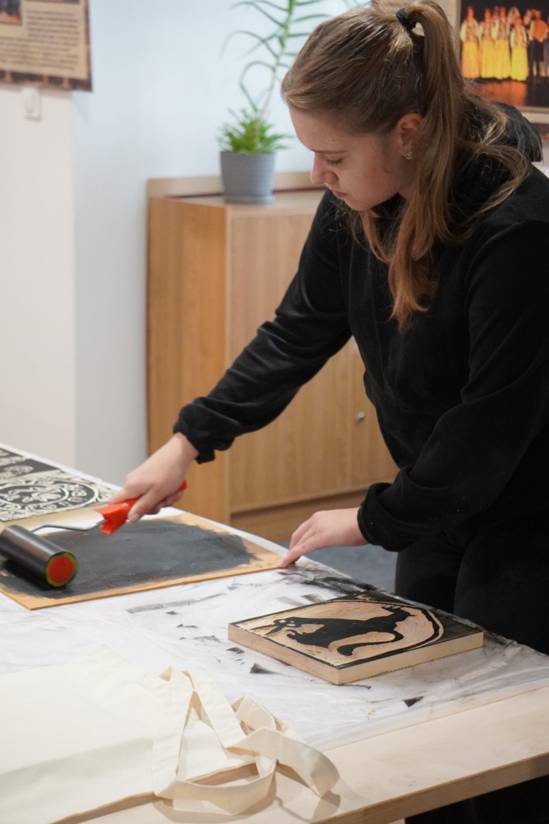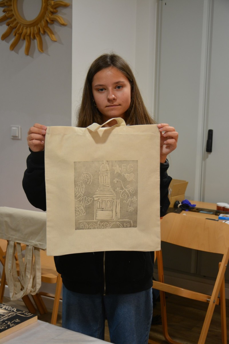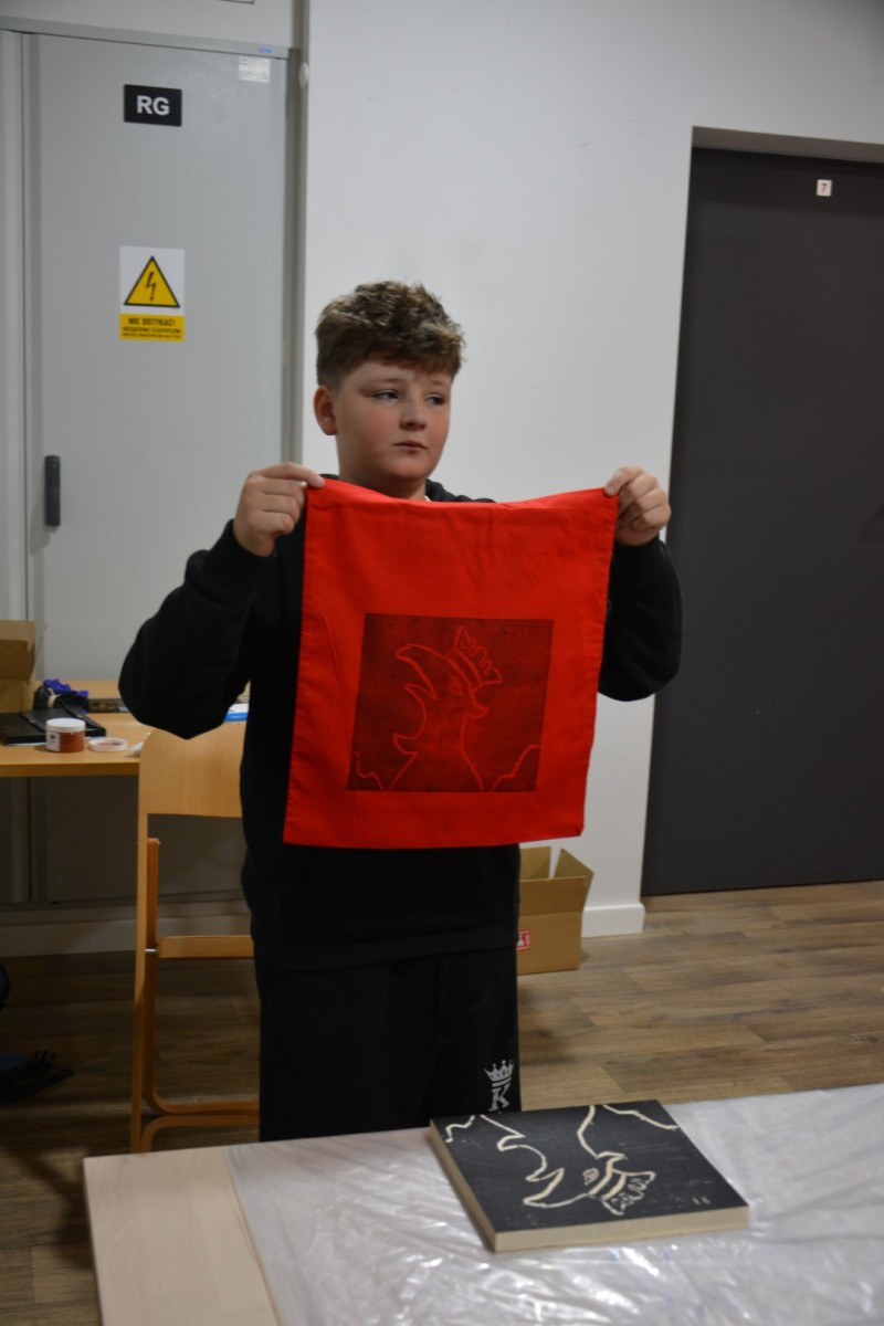 Najpierw podczas kilkugodzinnych warsztatów uczniowie ze SP w Tarnogrodzie samodzielnie wykonali drzeworyty inspirowane średniowiecznymi wzorami, które następnie posłużyły jako matryce do zadruku bawełnianych toreb. Tarnogrodzki Ośrodek Kultury na chwilę zamienił się w tradycyjny warsztat drukarski, a uczestnicy mogli przejść przez każdy etap procesu zadruku tkaniny.