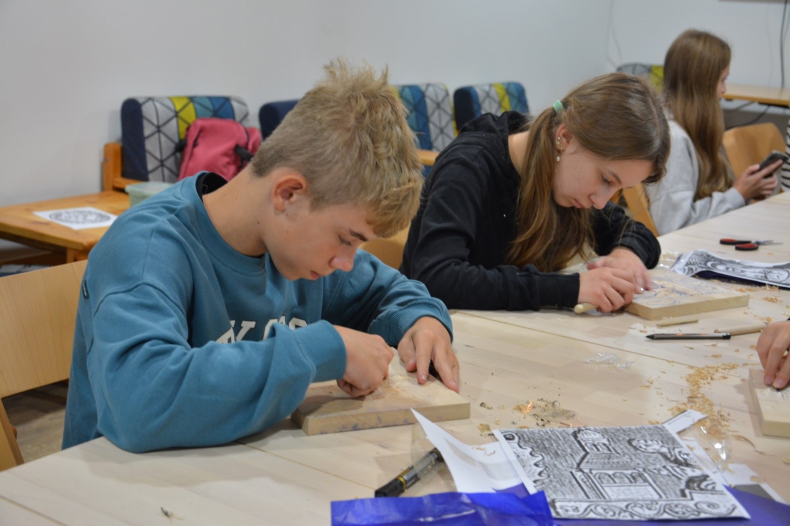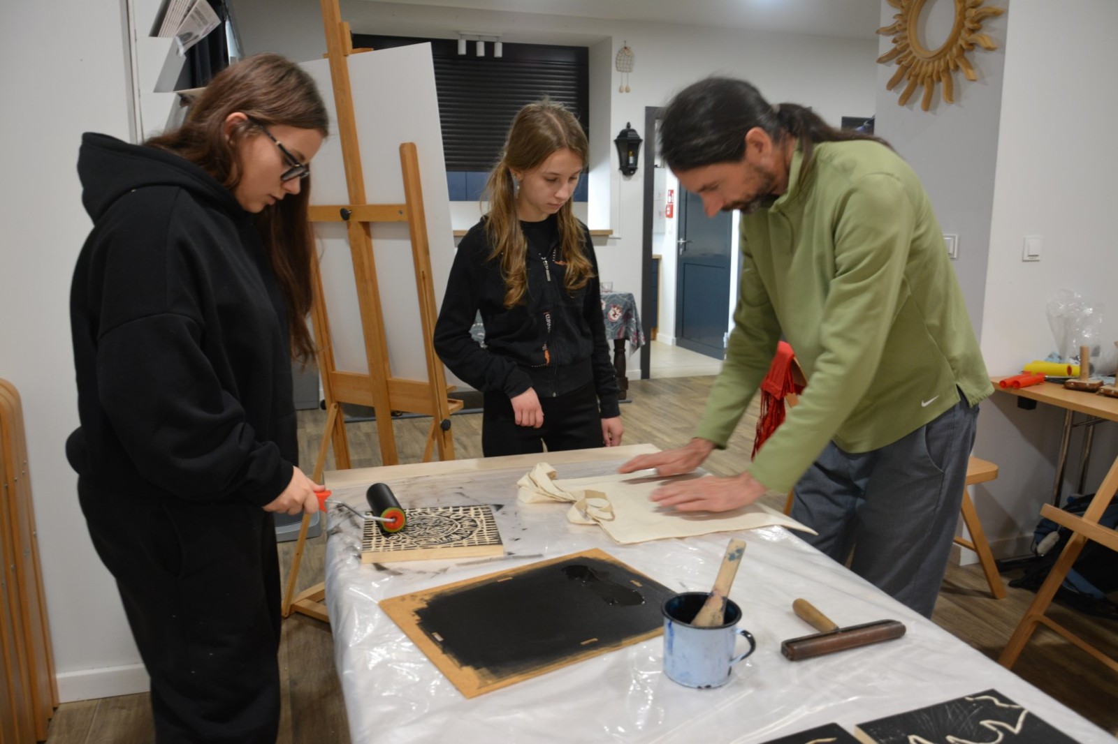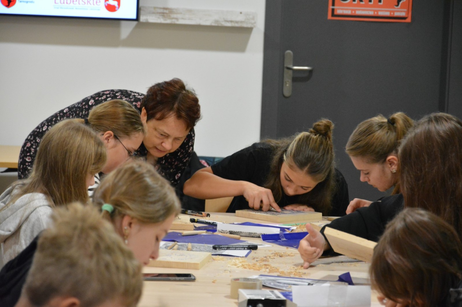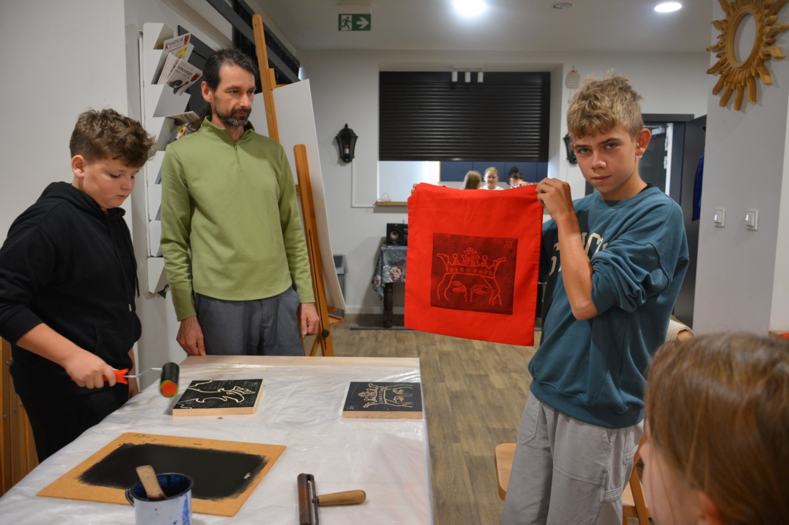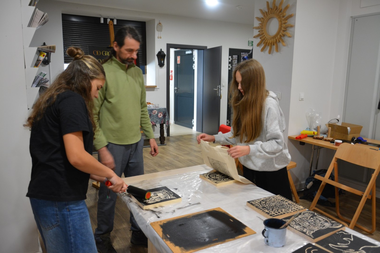 Najpierw podczas kilkugodzinnych warsztatów uczniowie ze SP w Tarnogrodzie samodzielnie wykonali drzeworyty inspirowane średniowiecznymi wzorami, które następnie posłużyły jako matryce do zadruku bawełnianych toreb. Tarnogrodzki Ośrodek Kultury na chwilę zamienił się w tradycyjny warsztat drukarski, a uczestnicy mogli przejść przez każdy etap procesu zadruku tkaniny.