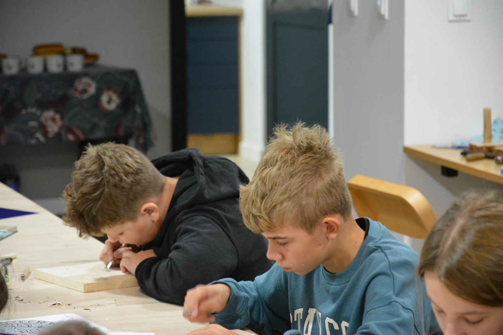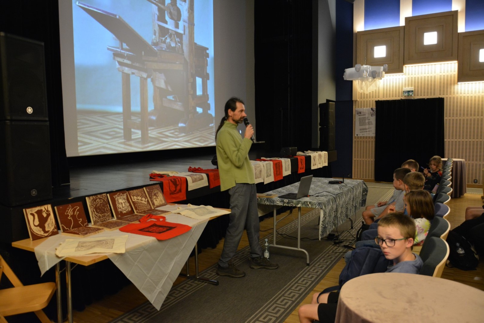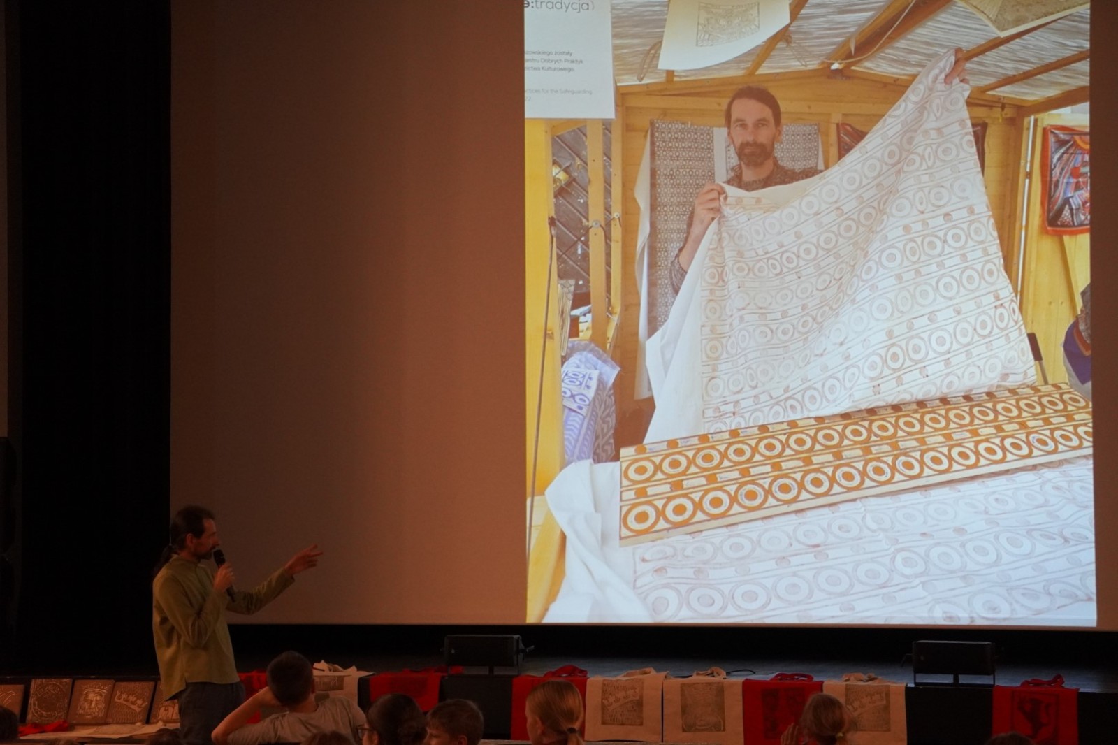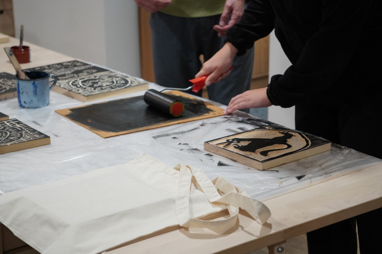 Najpierw podczas kilkugodzinnych warsztatów uczniowie ze SP w Tarnogrodzie samodzielnie wykonali drzeworyty inspirowane średniowiecznymi wzorami, które następnie posłużyły jako matryce do zadruku bawełnianych toreb. Tarnogrodzki Ośrodek Kultury na chwilę zamienił się w tradycyjny warsztat drukarski, a uczestnicy mogli przejść przez każdy etap procesu zadruku tkaniny.