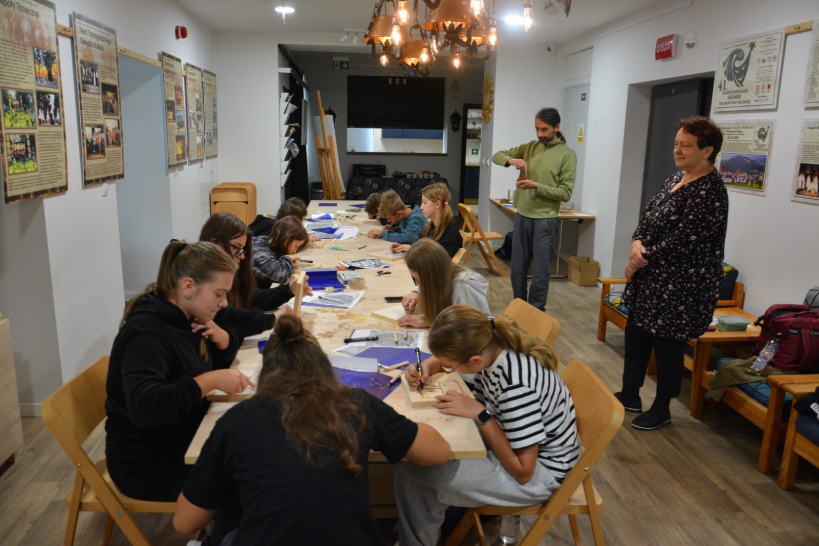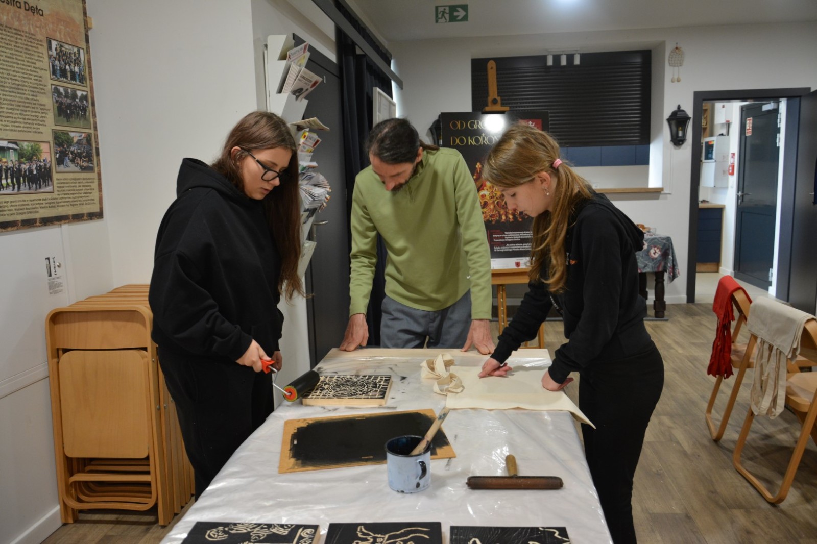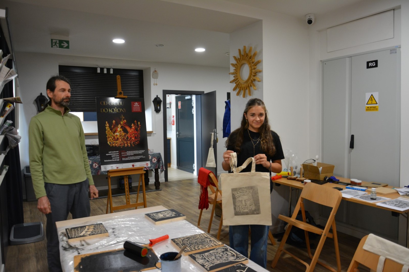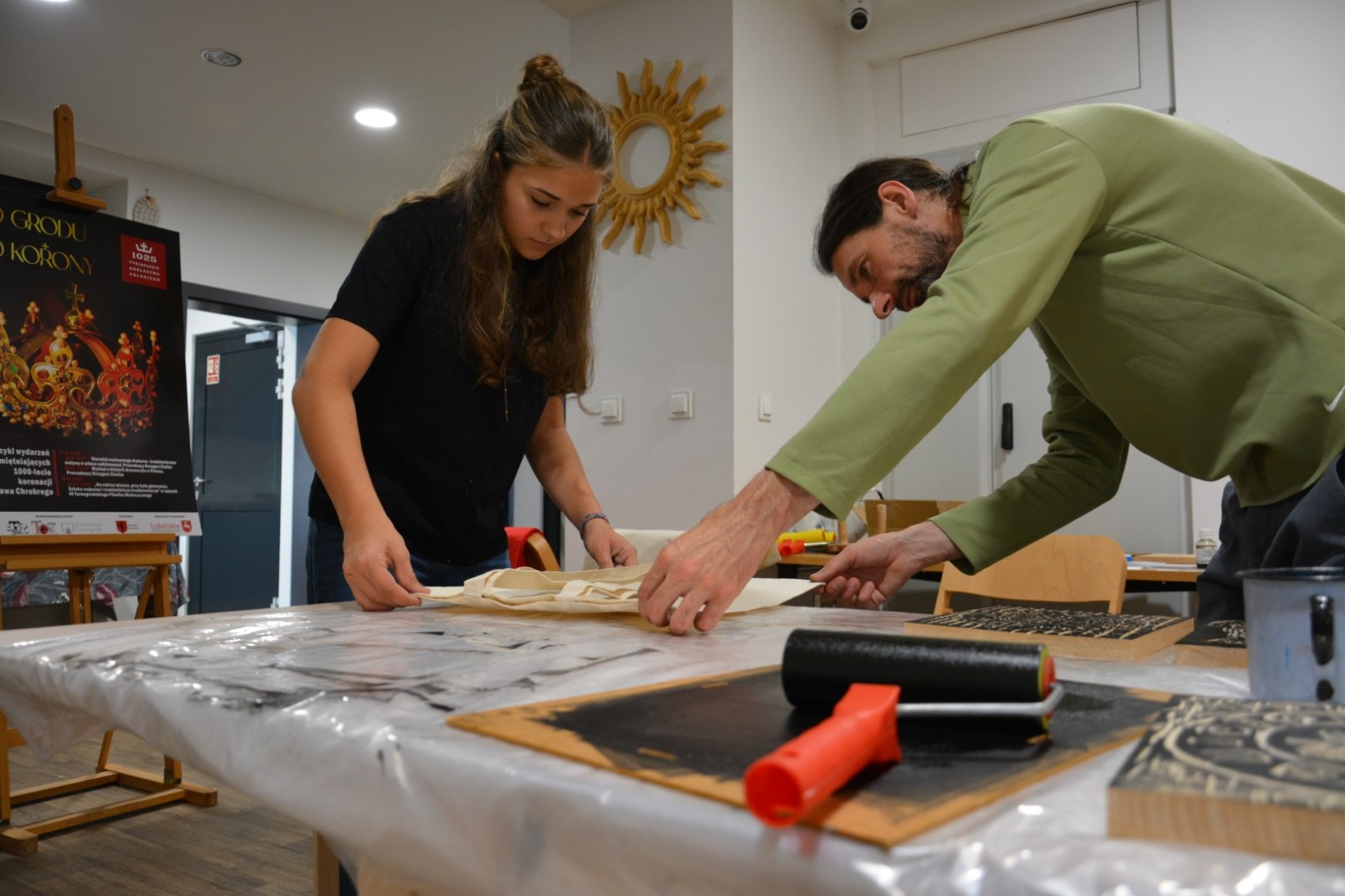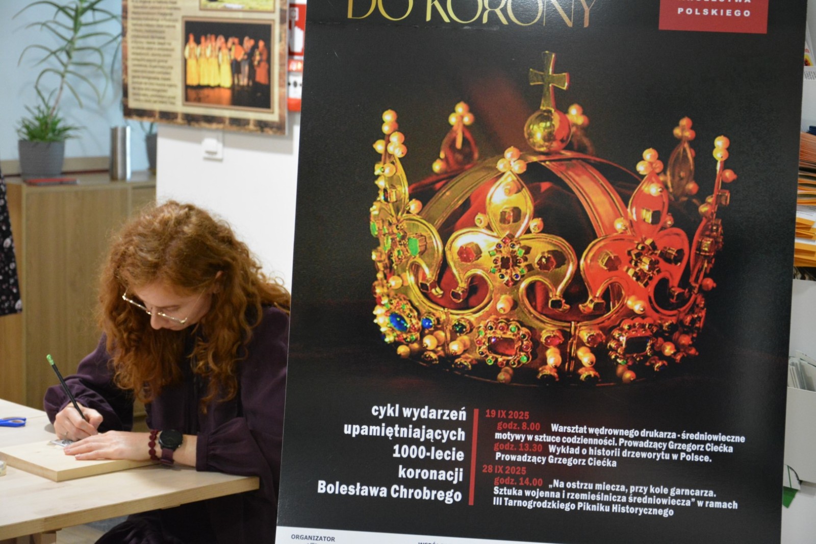19 września 2025r. Tarnogrodzki Ośrodek Kultury gościł wyjątkowego artystę, Grzegorza Ciećkę, specjalizującego się w drzeworycie ludowym i zadruku tkanin, który zapoznał młodzież z tradycyjną sztuką drzeworytniczą w ramach projektu "1000-lecie koronacji Bolesława Chrobrego"