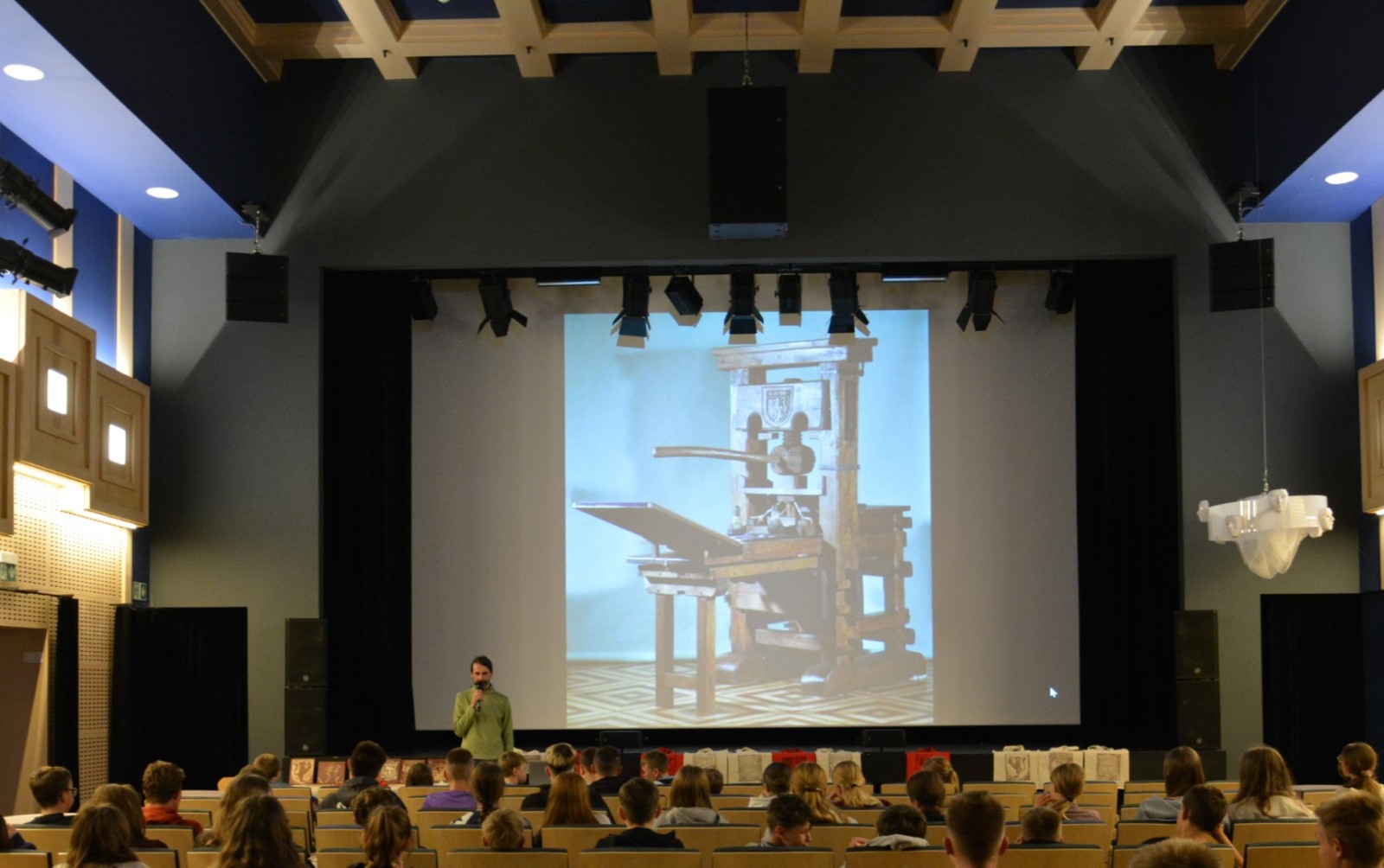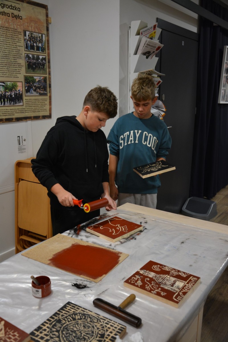 Na zakończenie Grzegorz Ciećka wygłosił wykład o historii drzeworytu w Polsce, starając się zarazić młodych słuchaczy pasją do tej unikatowej sztuki. Należy dodać, że artysta jest jednym z depozytariuszy reaktywacji i rozwoju drzeworytu płazowskiego, wpisanego do Krajowego rejestru dobrych praktyk w ochronie niematerialnego dziedzictwa kulturowego - tego samego, na którym znajdują się Sejmiki.