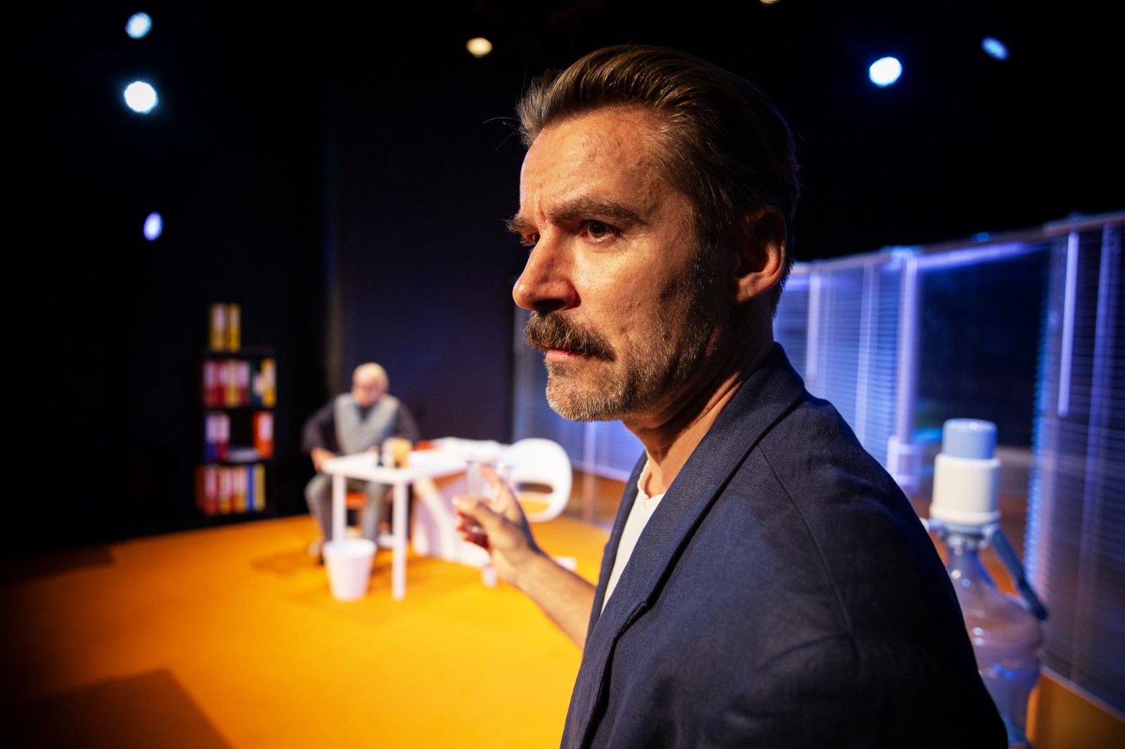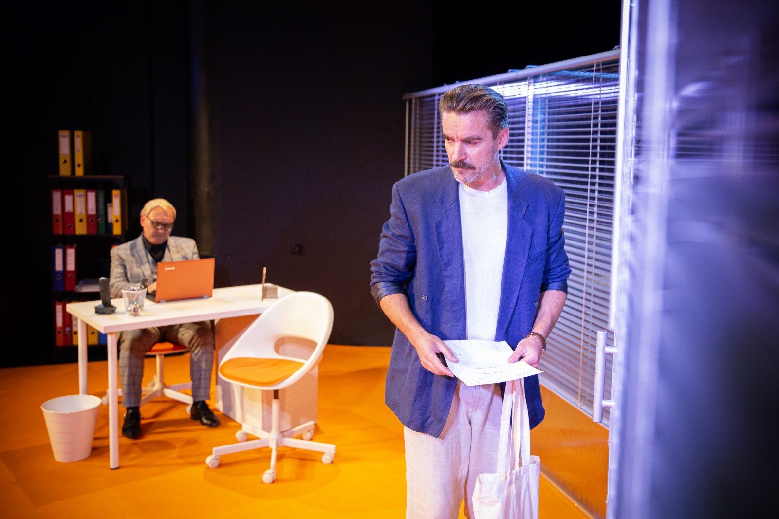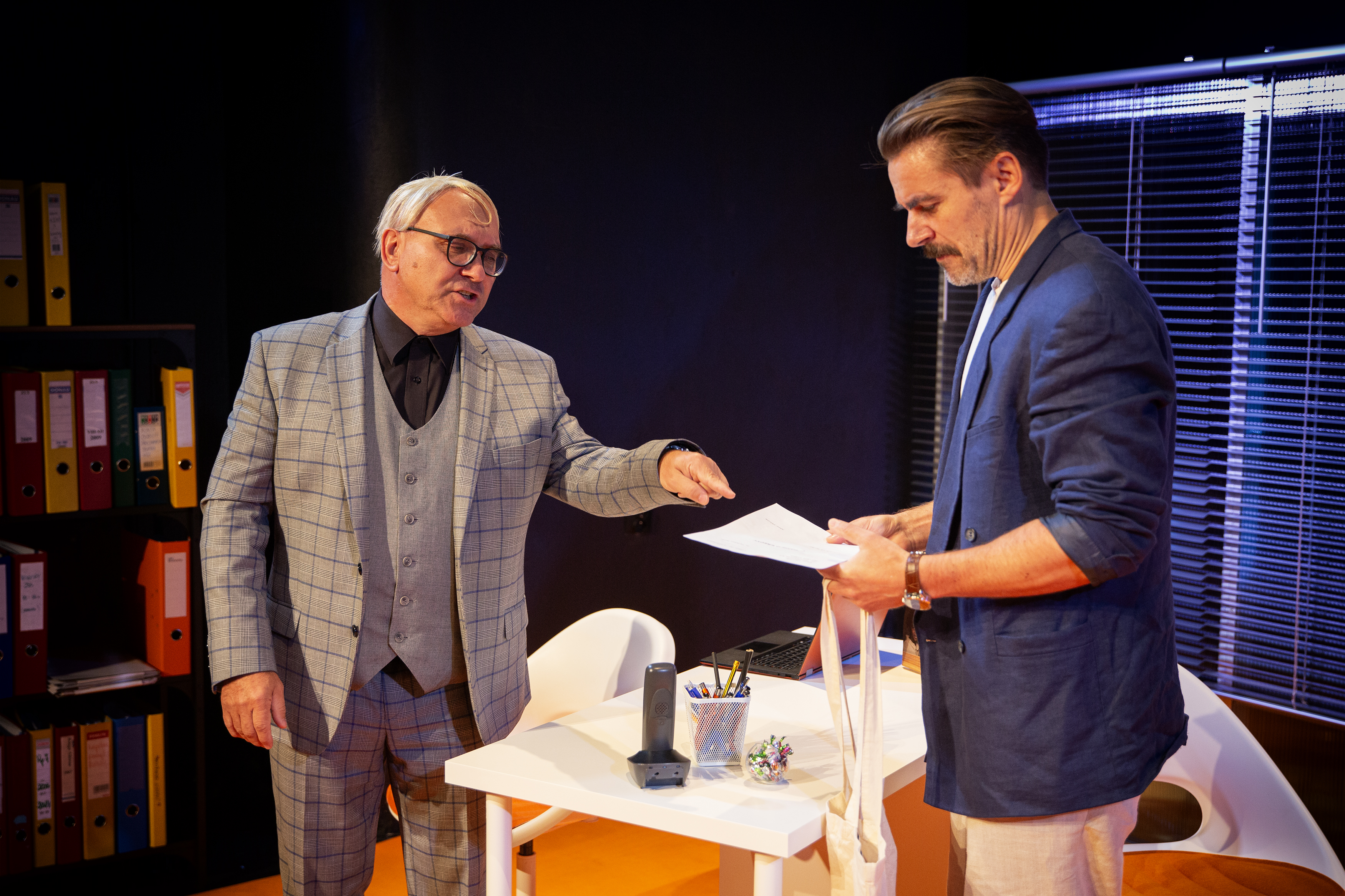 Na scenie Krzysztof Olchawa jako Adam – klient w finansowym dołku oraz Tomasz Bielawiec jako Dyrektor – urzędnik z zasadami, który nie spodziewa się, że zwykła rozmowa o pożyczce zmieni jego życie. Współczesny kataloński autor, Jordi Galceran mistrzowsko buduje napięcie, bawiąc się oczekiwaniami widza i prowadząc go przez spiralę emocji – od śmiechu, przez zdumienie, aż po gorzką ironię. Proponuje nam czarny humor w najlepszym wydaniu – inteligentny, nieoczywisty i celnie punktujący nasze codzienne słabości. W świecie, w którym liczą się cyfry, przypomina o tym, co naprawdę ma wartość.